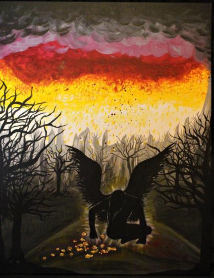 Ich wusste in diesem Fall von Anfang an, dass ich einen Engel malen werde und mit welchen Farben ich arbeiten möchte. Ich hatte sogar schon einen Titel für das Bild. Danach versuchte ich nicht mehr allzu viel nachzudenken, da es mich blockiert hätte.