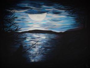 "FischerImMONDLICHT" 2016, Acryl auf Leinwand, 60x80cm